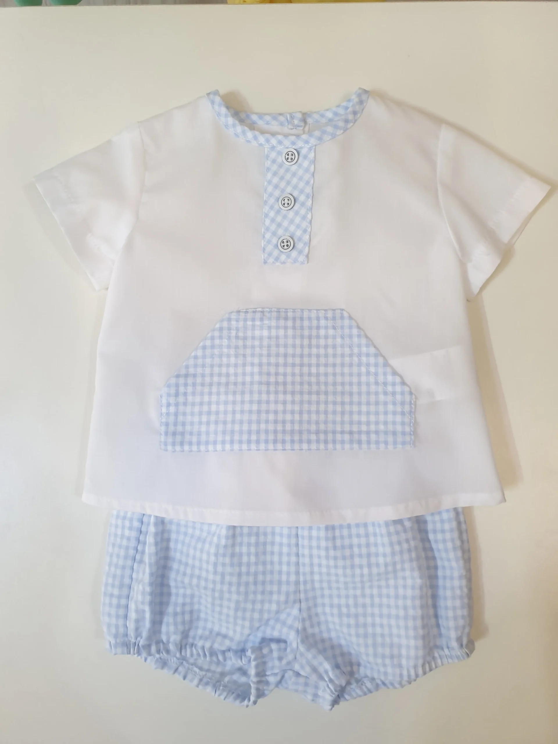 Conjunto de dos piezas con detalle de estampado a cuadros.