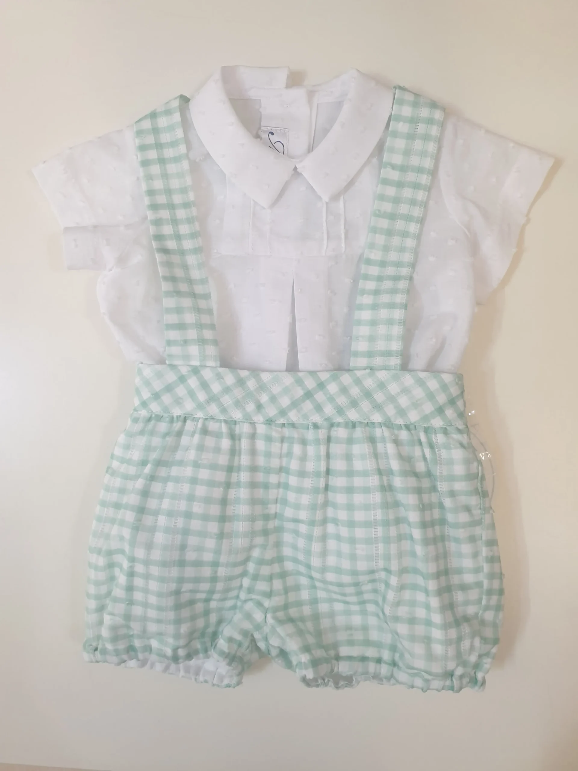 Ranita de cuadros verde con camisa de plumeti en manga corta
