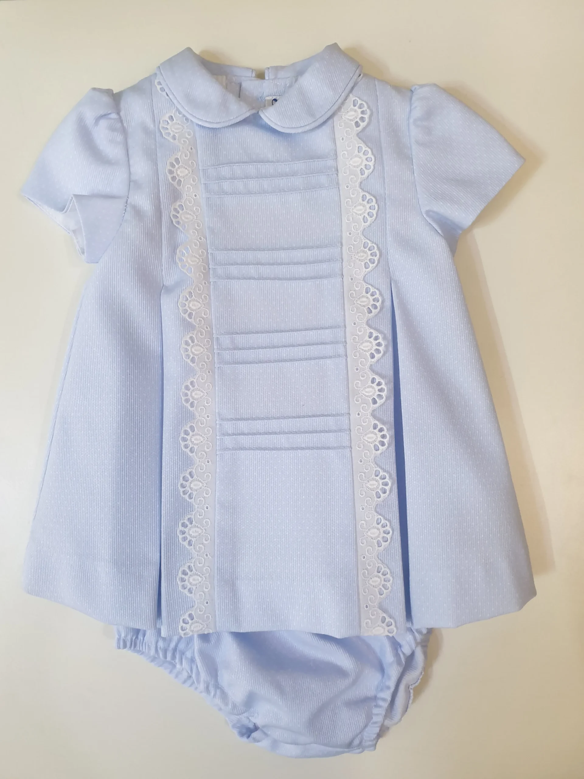Vestido celeste con cubrepañal.